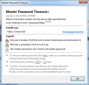 Mozilla Firefox schützt optional alle gespeicherten Zugangsdaten per Masterpasswort. Nach einer einmaligen Anmeldung dieses Hauptpassworts bleiben die Daten bist zum Neustart des Browsers ungeschützt. Master Password Timeout+ behebt die potentielle Sicherheitslücke durch automatisches oder manuelles Abmelden.